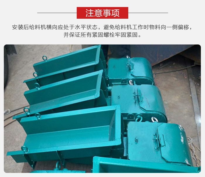 安裝后給料機橫向應處于水平狀態,避免給料機工作時物料向一側偏移,并保證所有緊固螺栓牢固緊固。