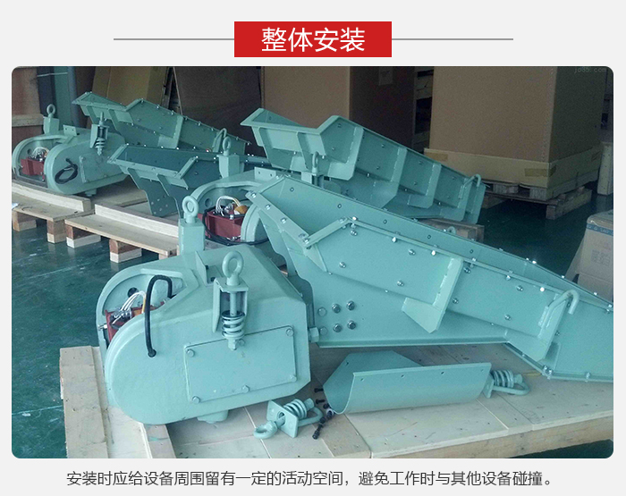 電磁振動給料機應整體安裝,一般不允許拆卸,也不允許在機器上固結任何剛性附件。安裝時應給設備周圍留有一定的活動空間,避免工作時與其他設備碰撞,一般長度方向的空間小為 50 mm,寬度方向為 25 mm。