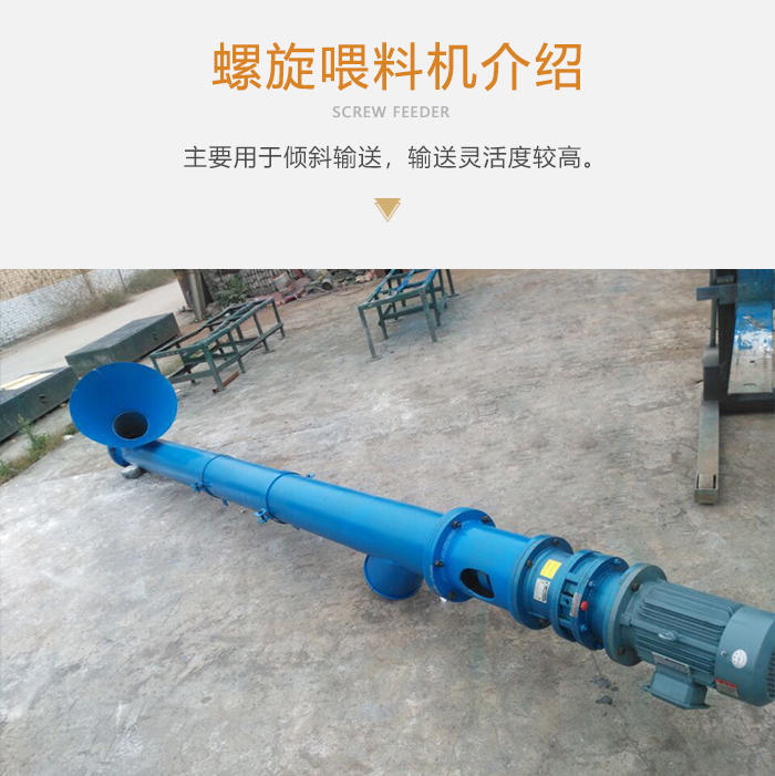 螺旋喂料機具有輸送效率高,工作安全可靠,結構簡單,功能完備、密封性好、噪音小和外形美觀等特點。